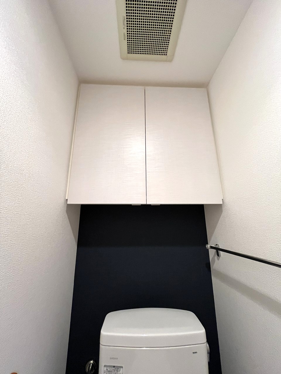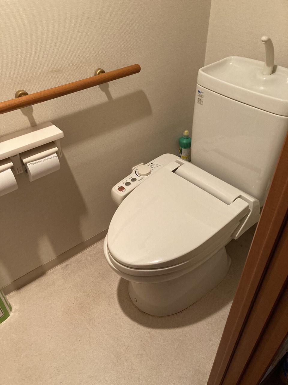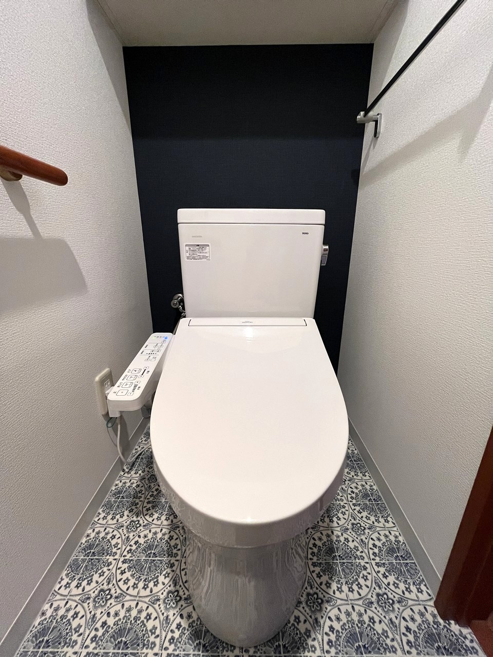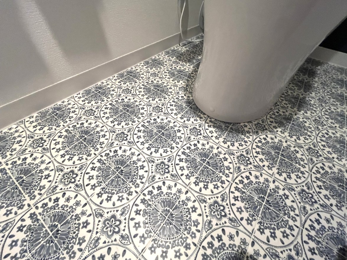 壁紙・クッションフロアを変えて、ホテルのトイレのような華やかな空間に。