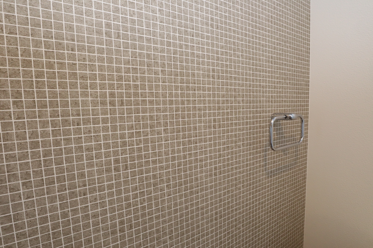 2階の壁は1面のみタイル状に。洒落た雰囲気で1階との差別化を図りました。