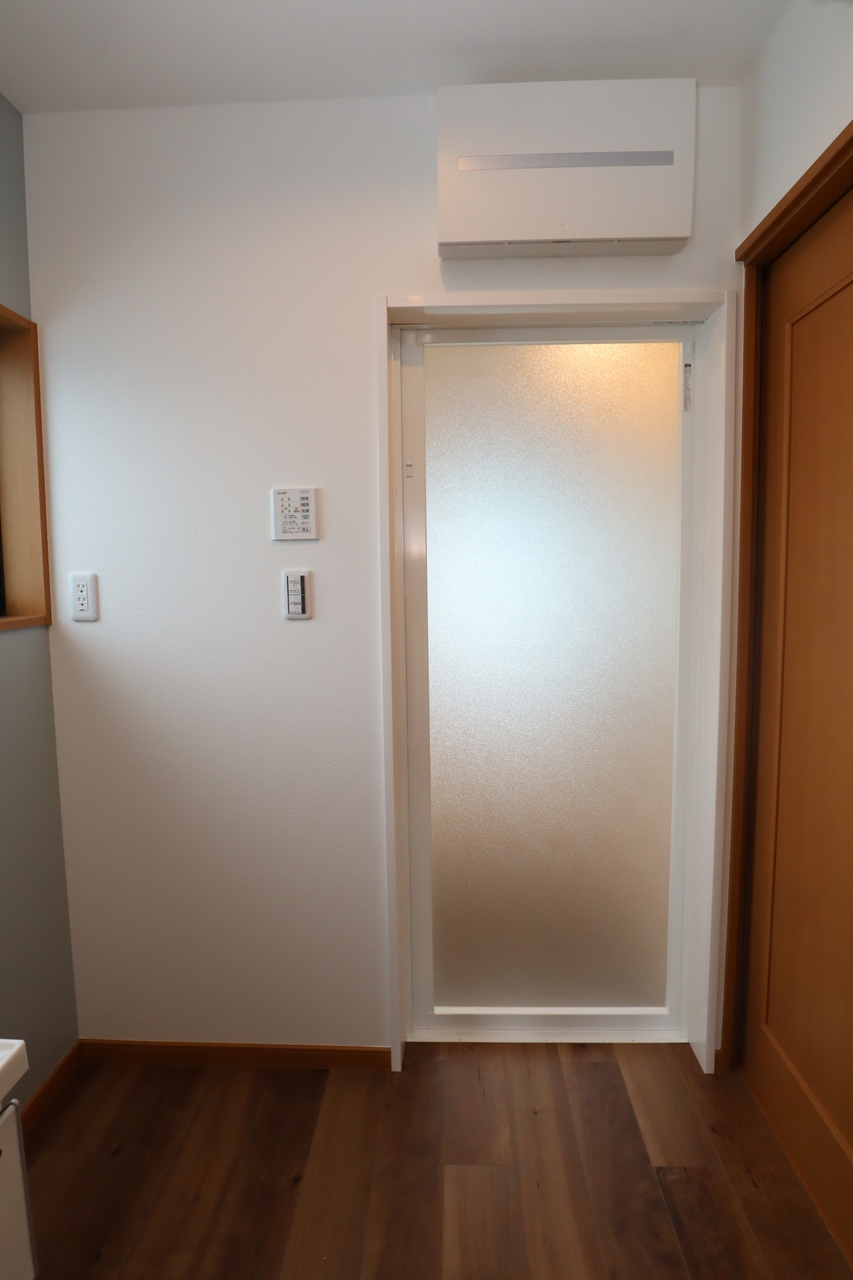 浴室入口も3方枠を新しくし、換気扇や照明の入れ替えもしました。
