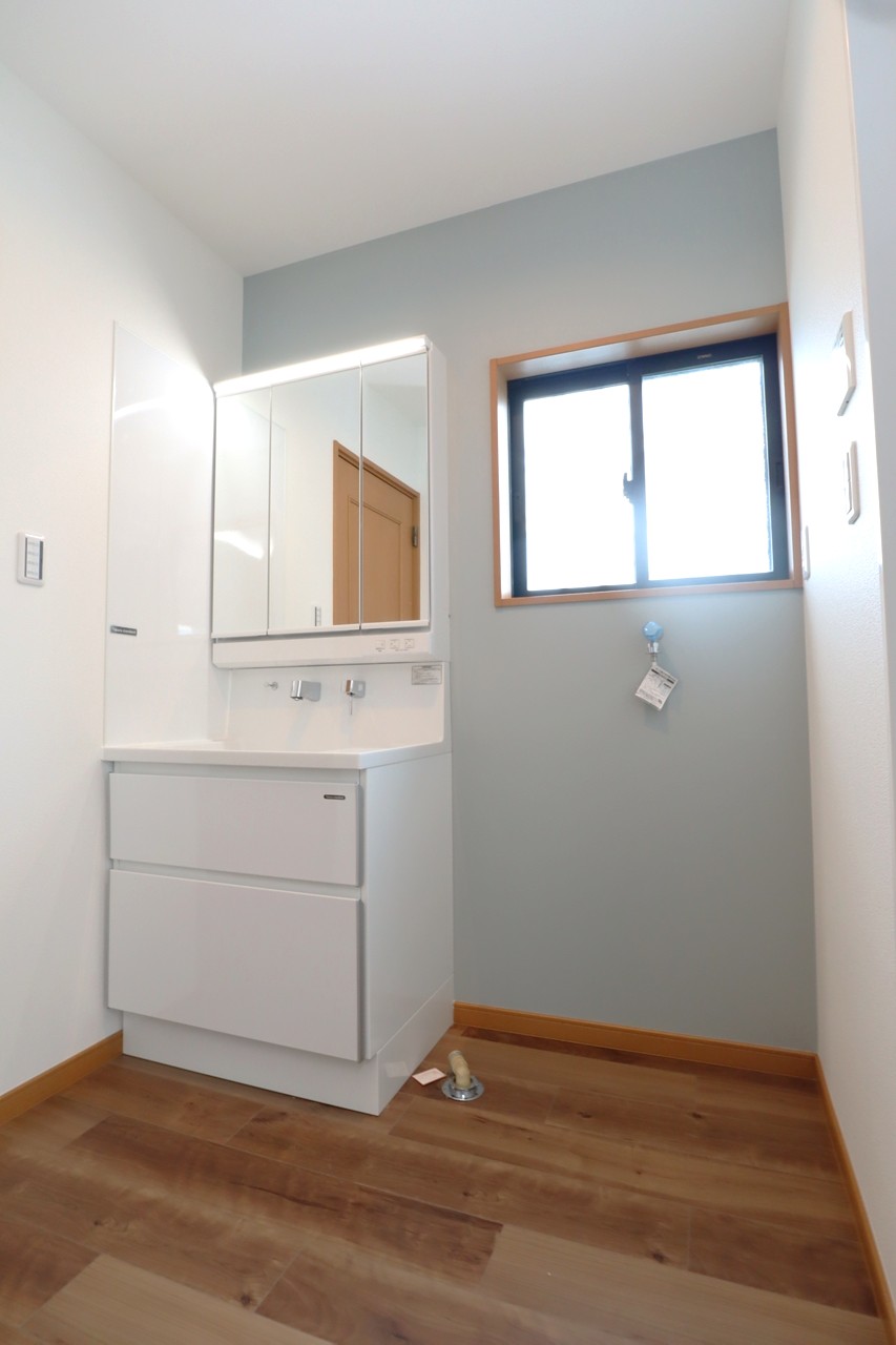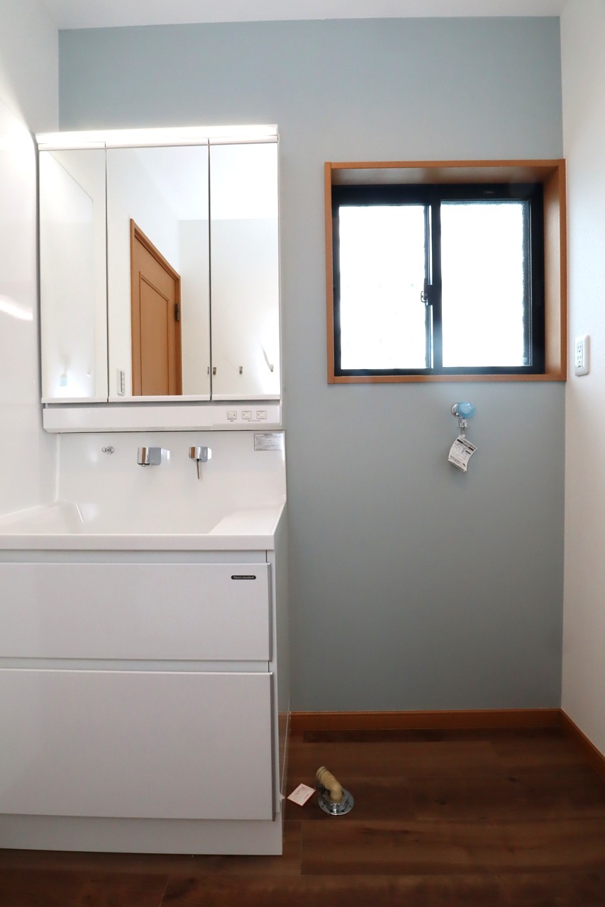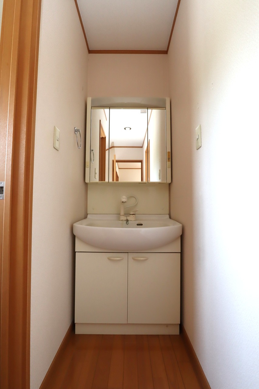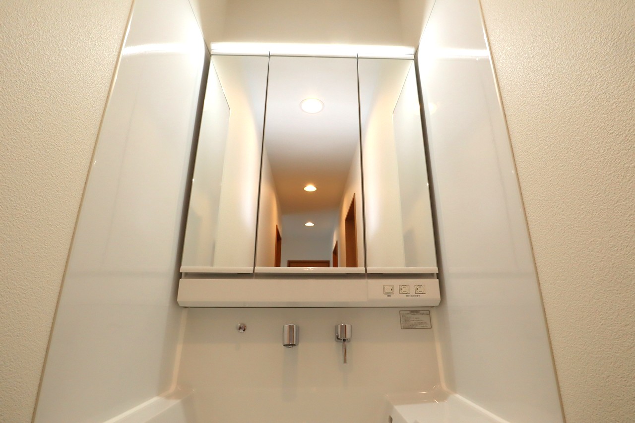 既存の洗面台と同じ三面鏡で、さらに収納の多いものです。