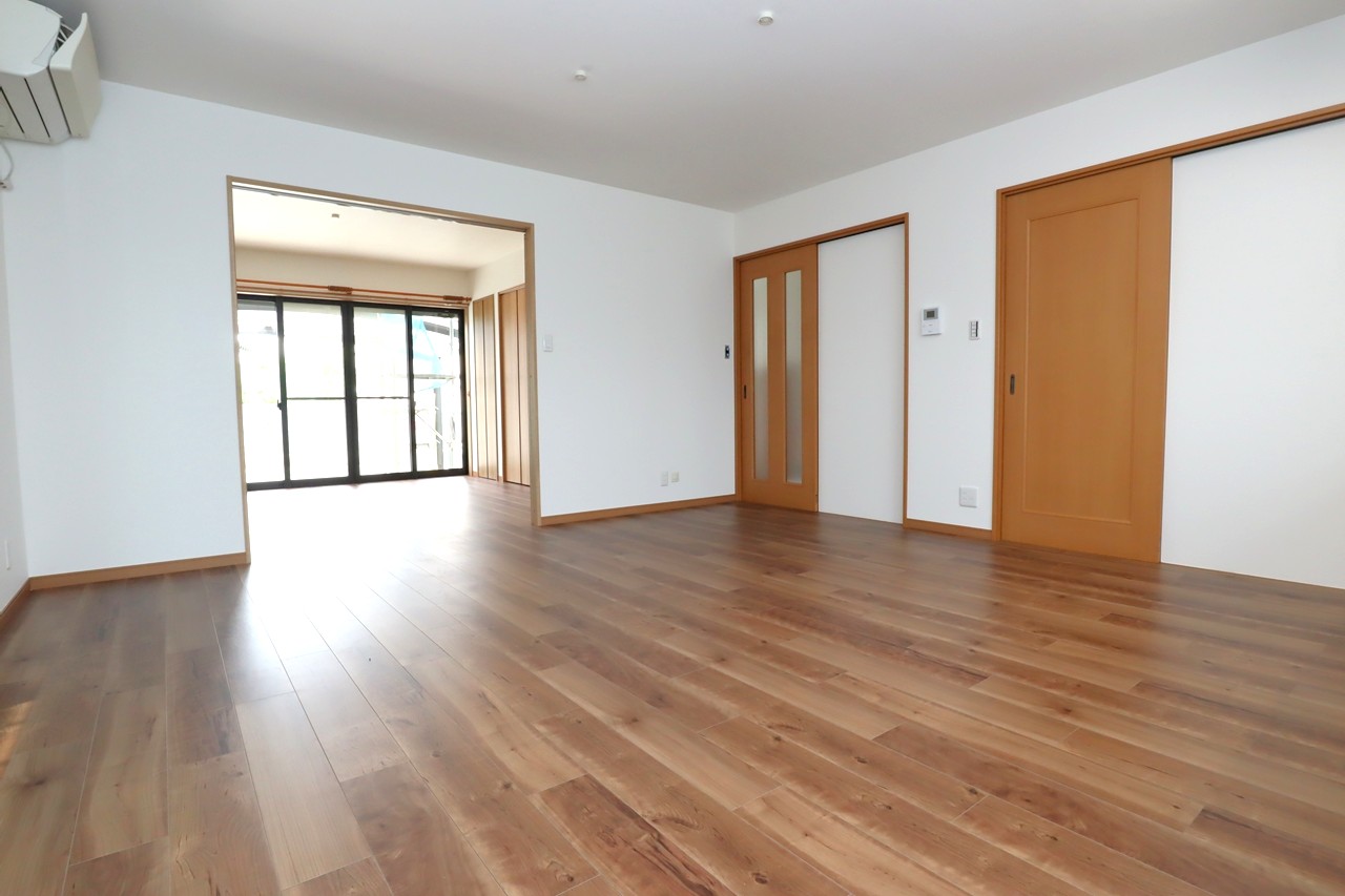 間仕切りの壁はそのままですが、襖がなくなりフローリングの種類を揃えたことで、一部屋が広くなったように感じます。