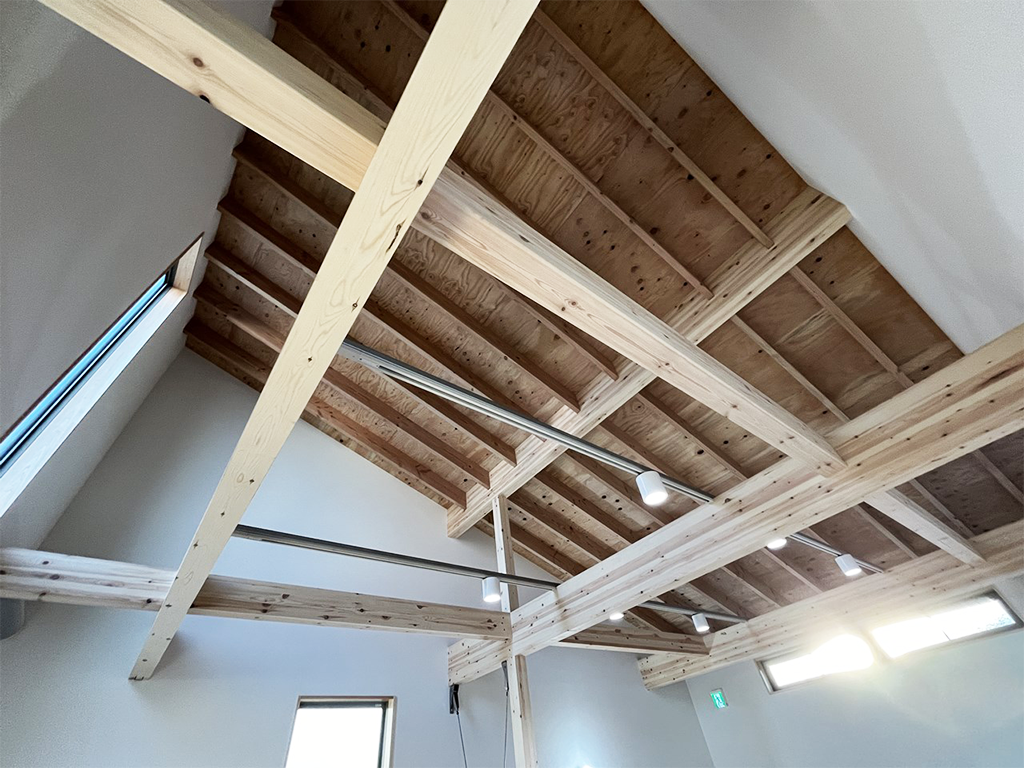 東西南北窓の形を変えることにより、入り込む光の量を調整しながら快適に過ごせる空間になるよう設計いたしました。