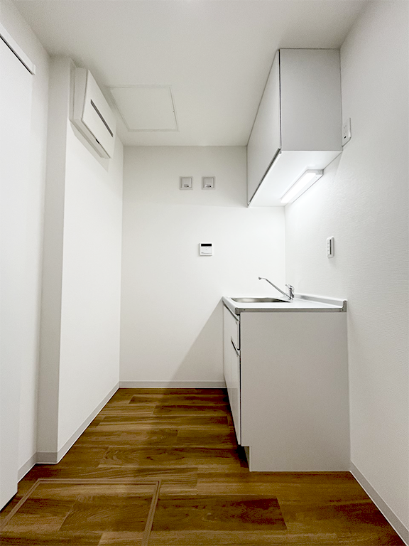 コンパクトなキッチンですが、収納スペースはしっかり確保しています。