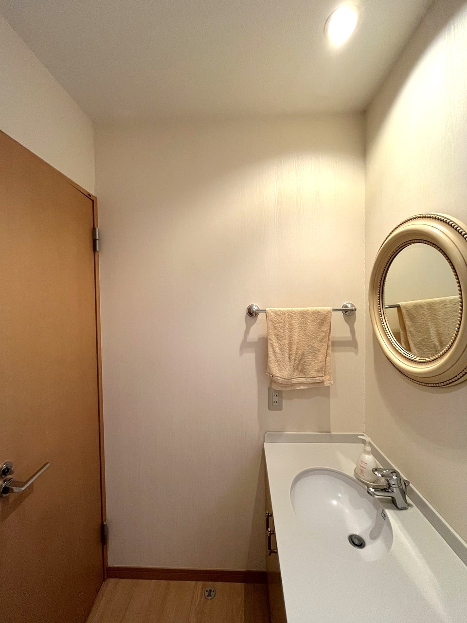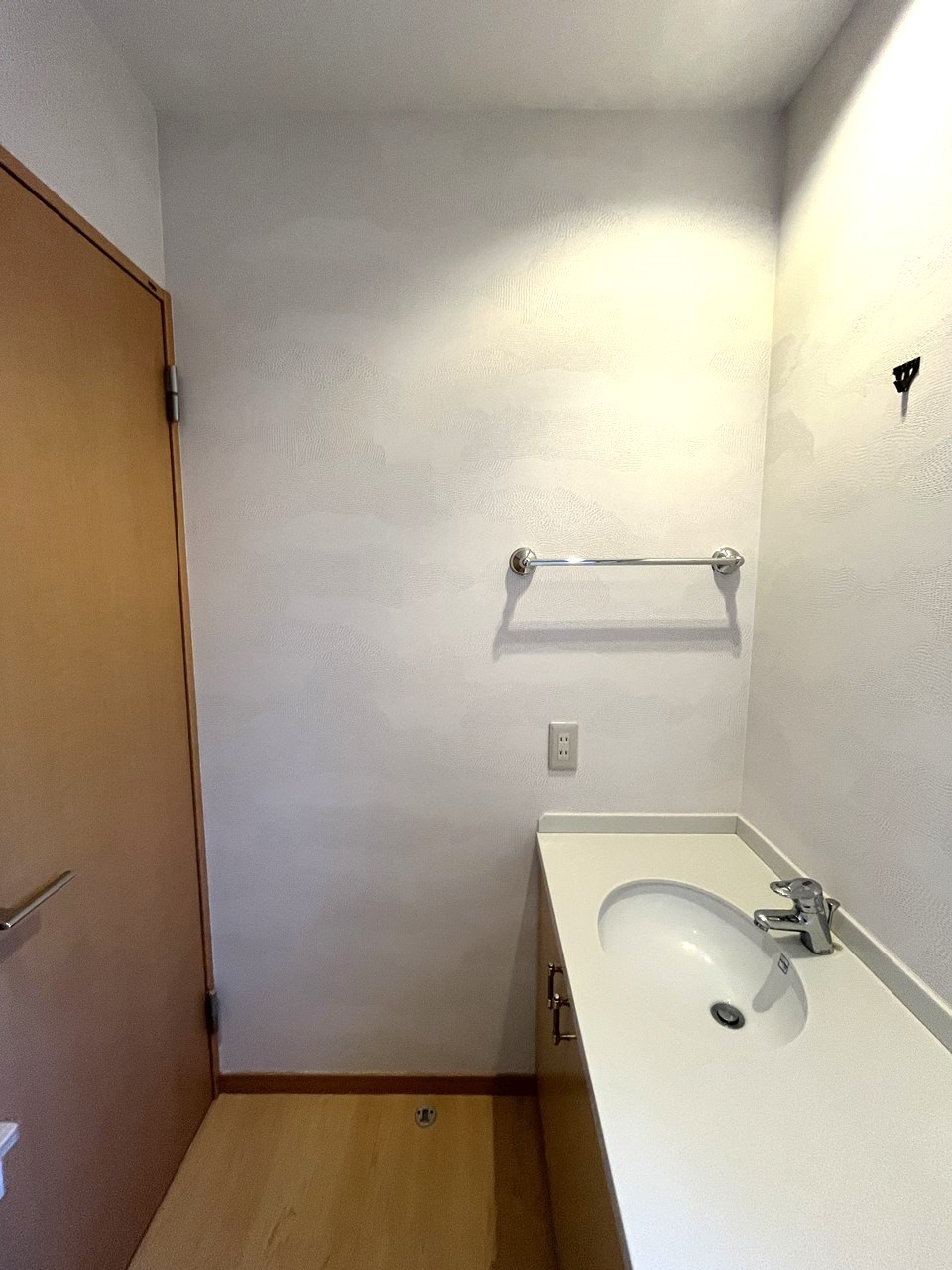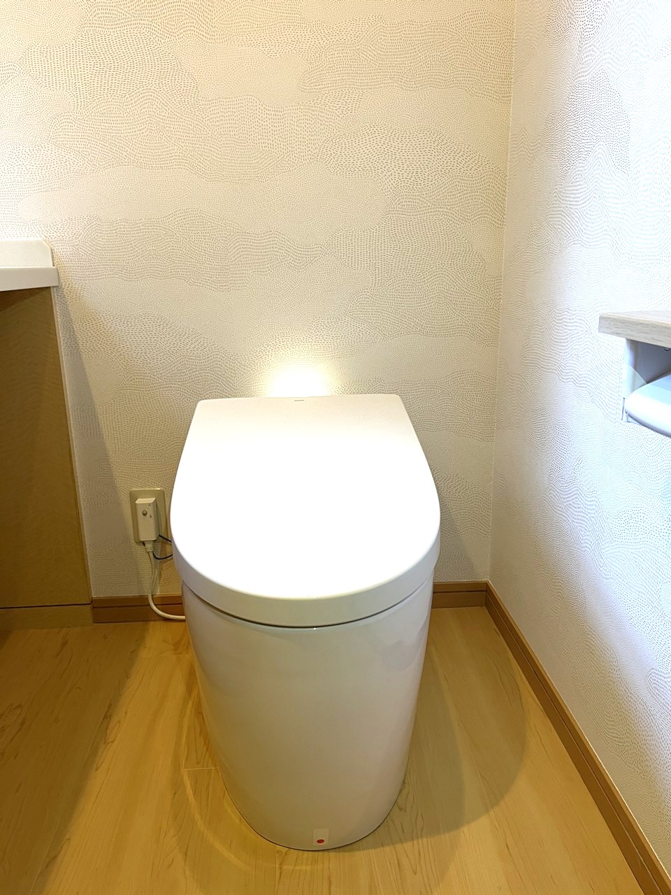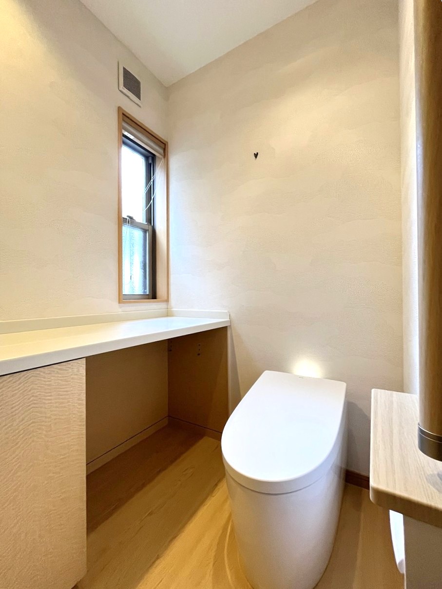 壁クロスは奥様こだわりの海外製クロスを採用し、高級感のあるトイレ空間に仕上がりました。