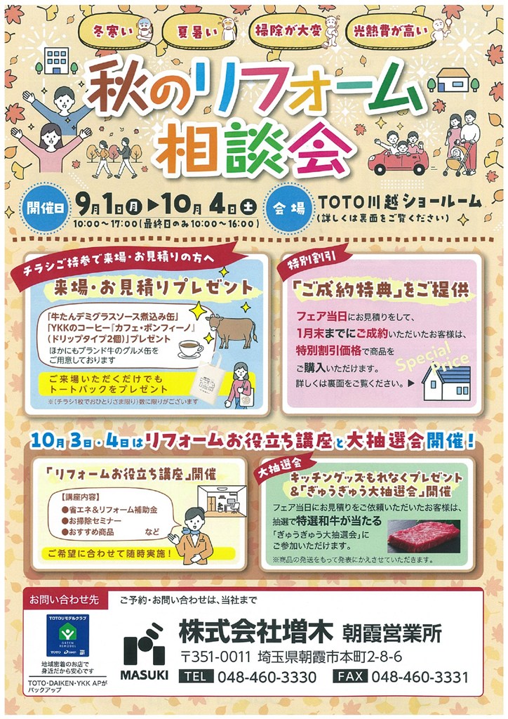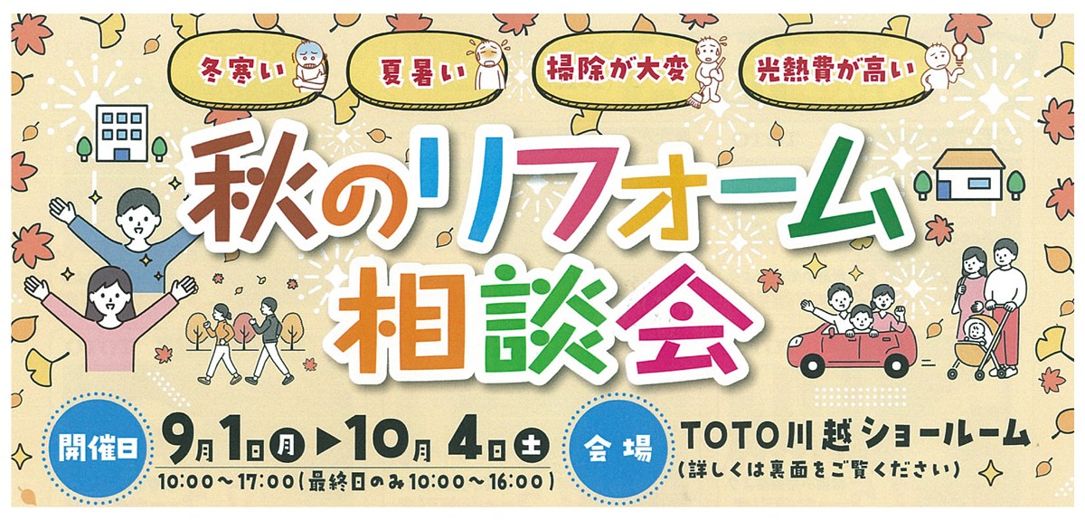現在、TOTO川越ショールームにて『秋のリフォーム相談会』を開催中です。