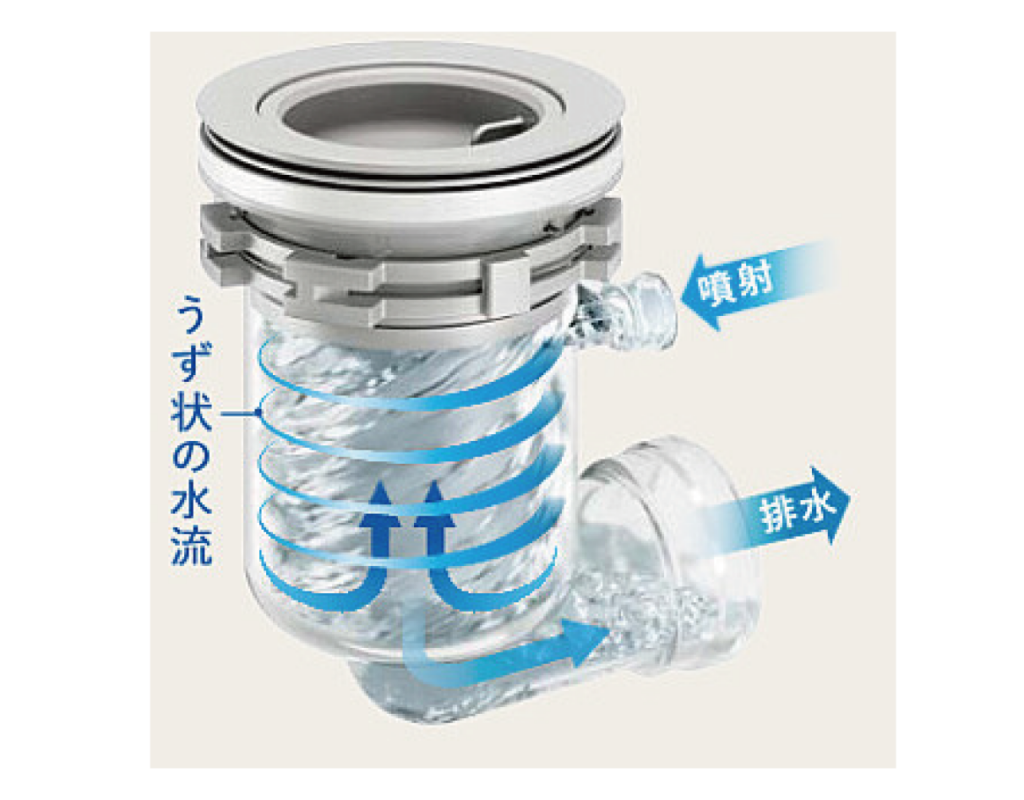 水を溜めることで、下水からの悪臭や虫の侵入を防ぐ排水トラップですが、