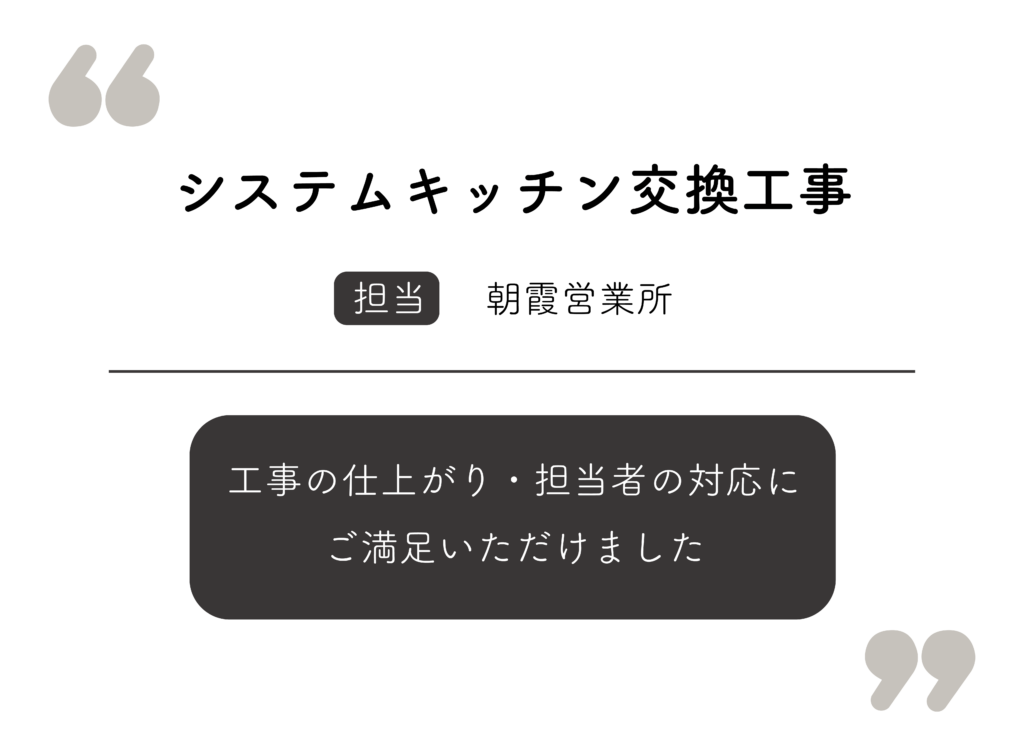 いただいたお声は、リフォーム工事の品質・スタッフの意識向上に繋げさせていただいております。