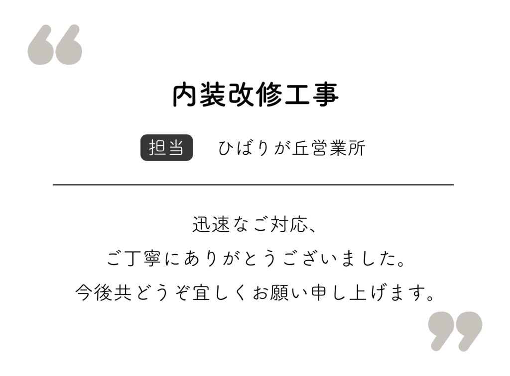 弊社で工事をご用命いただくとともに、貴重なご意見をお寄せいただき誠にありがとうございます。