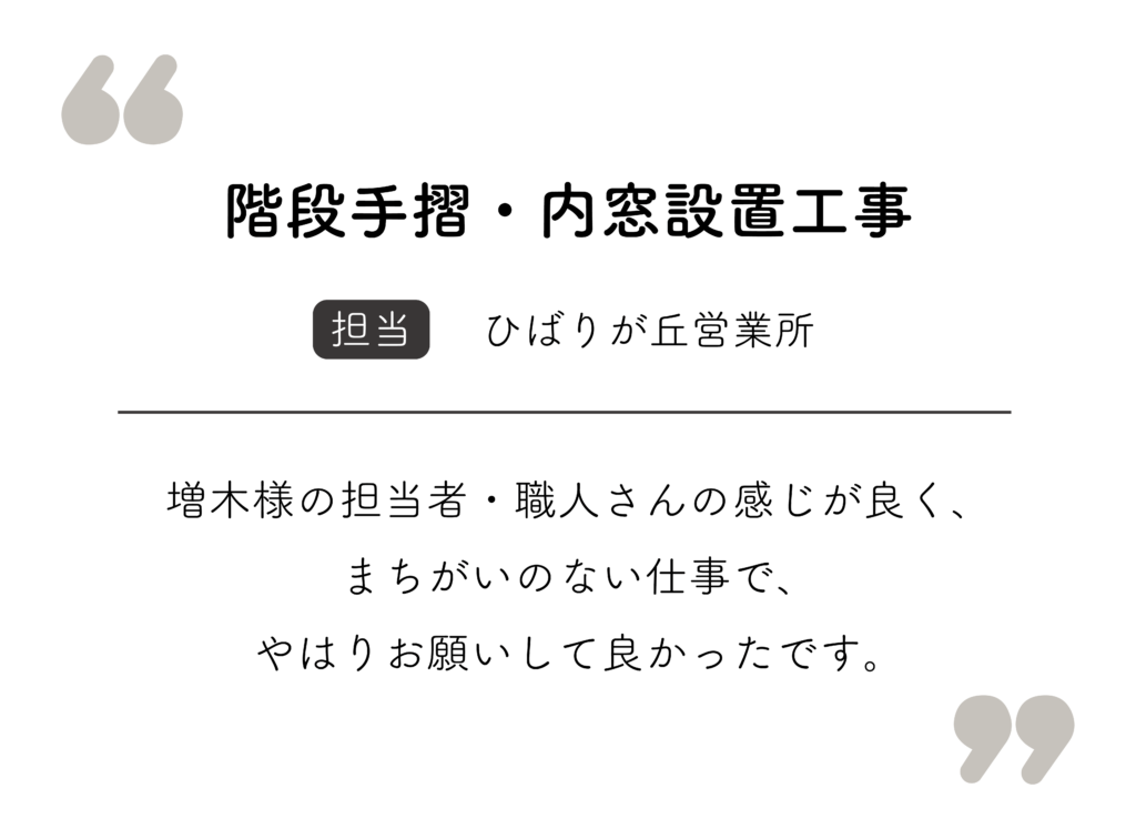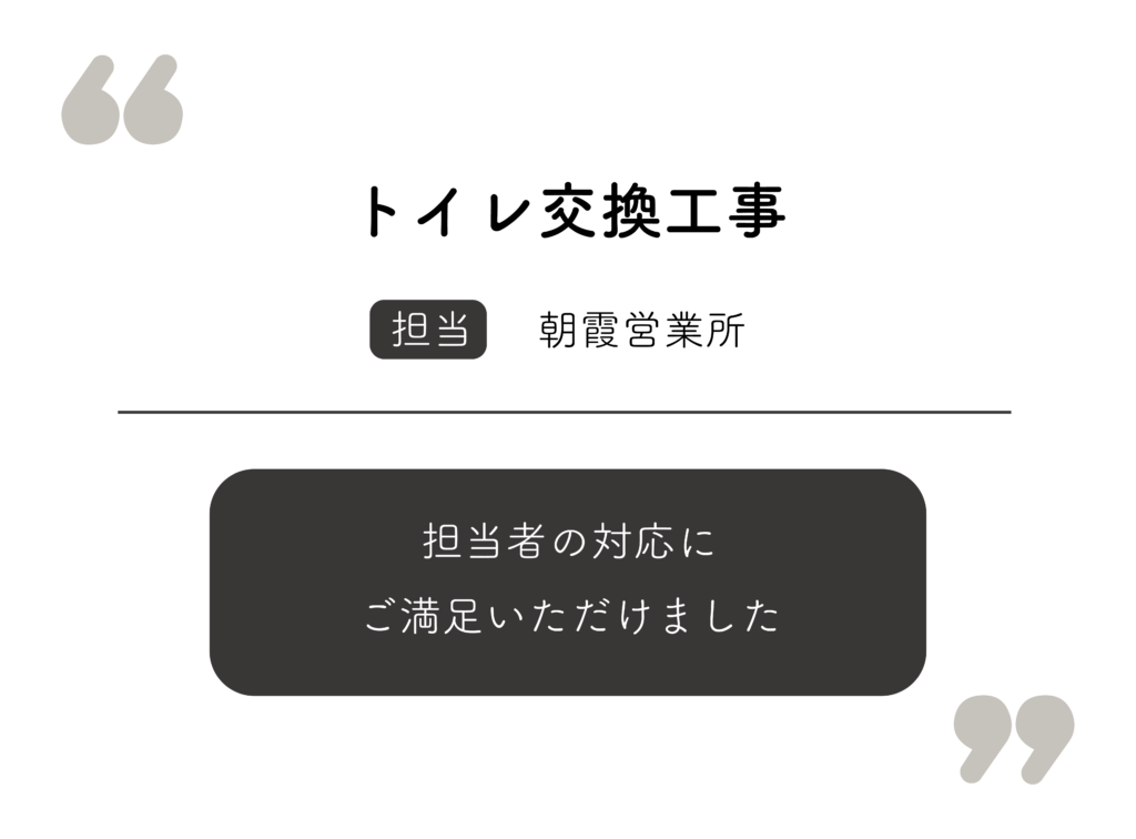 いただいたお声は、リフォーム工事の品質・スタッフの意識向上に繋げさせていただいております。