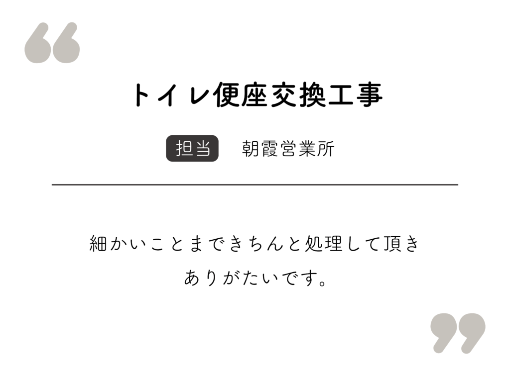 いただいたお声は、リフォーム工事の品質・スタッフの意識向上に繋げさせていただいております。